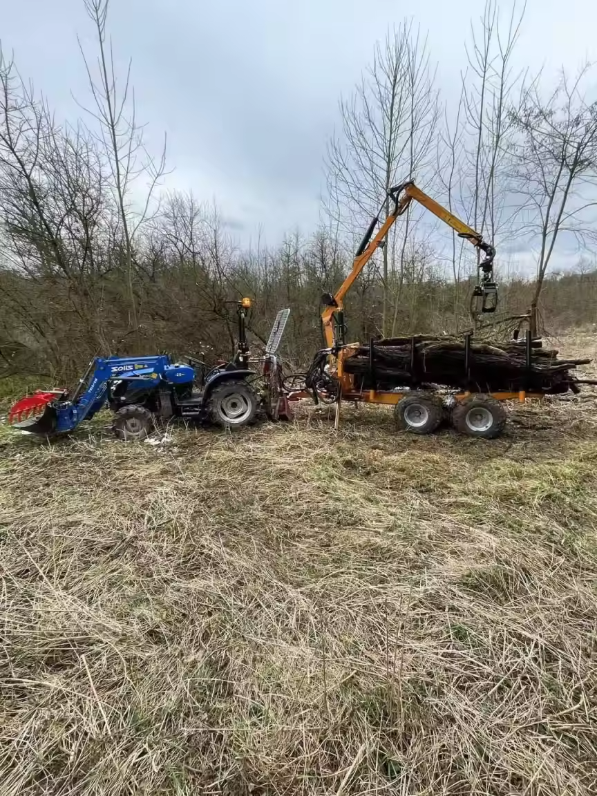 Oblíbená lesní vyvážečka určena už spíše za malotraktory a traktory poháněna vlastním hydraulickým agregátem ve spojení s benzínovým motorem Loncin 12Hp, nebo pro přímé připojení na hydrauliku traktoru.